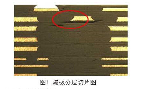多張內層芯板和半固化片疊加,壓合生產(chǎn)時(shí)容易產(chǎn)生滑板、分層、樹(shù)脂空洞和氣泡殘留等缺陷。在設計疊層結構時(shí),需充分考慮材料的耐熱性、耐電壓、填膠量以及介質(zhì)厚度,并設定合理的高層板壓合程式。層數多,漲縮量控制及尺寸系數補償量無(wú)法保持一致性;層間絕緣層薄,容易導致層間可靠性測試失效問(wèn)題。圖1是熱應力測試后出現爆板分層的缺陷圖。