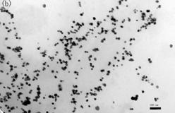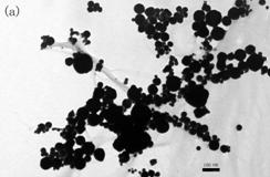 (2) 用抗壞血酸還原制備的納米銀粒子大小不均一,粒徑分布較寬,平均粒徑在50 nm左右,其融化點(diǎn)在170℃。