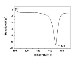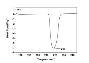 圖 5 納米銀粒子的DSC曲線(xiàn):(a)抗壞血酸還原,(b)硼氫化鉀還原,(c)硼氫化鉀加PAAS分散劑