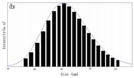 圖3 粒徑分布圖 (a)抗壞血酸還原,(b)硼氫化鉀還原,(c)硼氫化鉀加PAAS分散劑